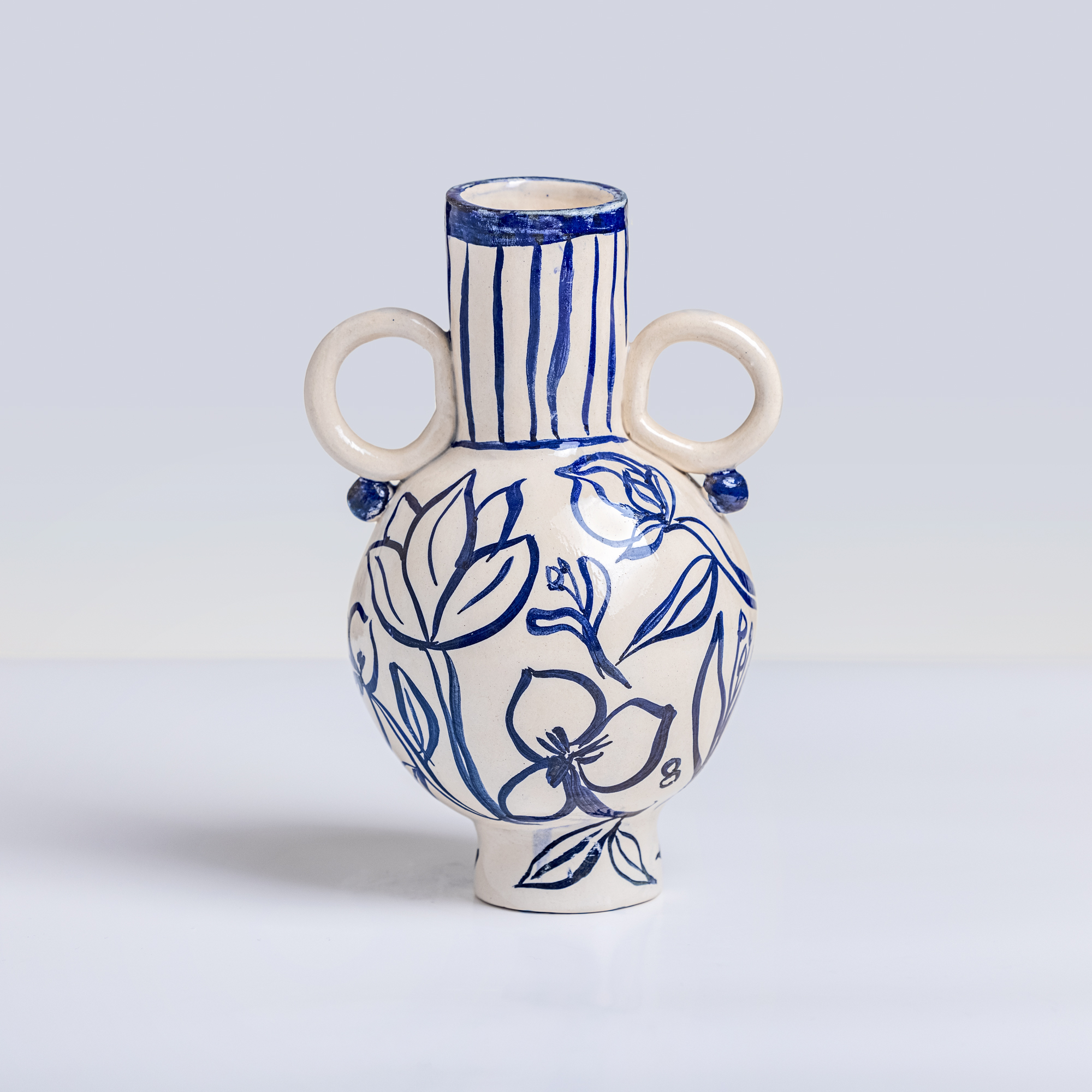 Low-temperature clay pieces are made with the ancient technique of rolling, which allows unique works to be built with free lines. Hand-painted with slip. Finished with shiny glaze on the interior and exterior.