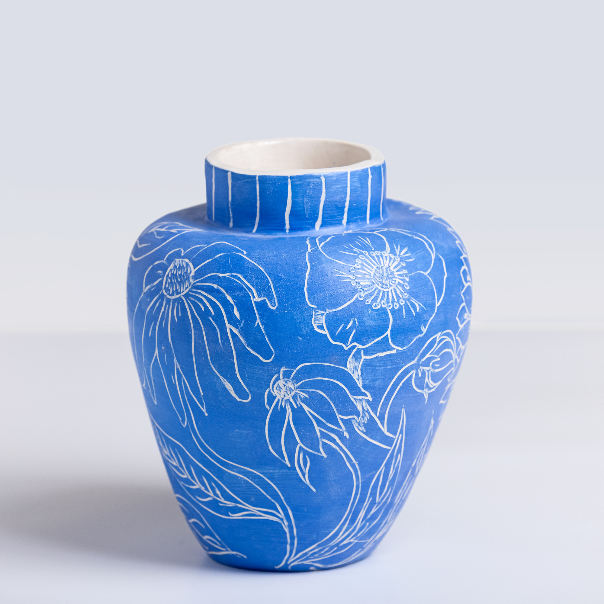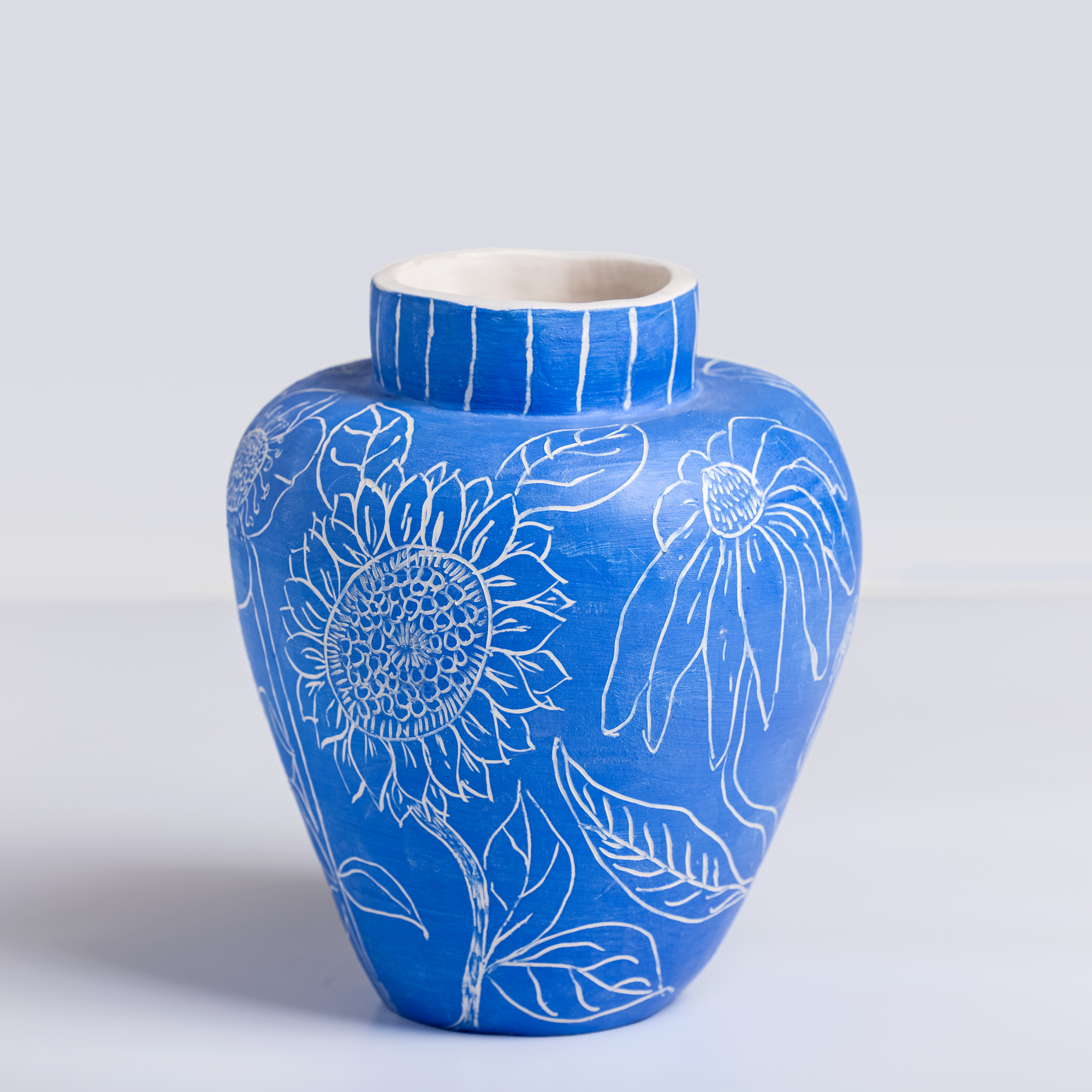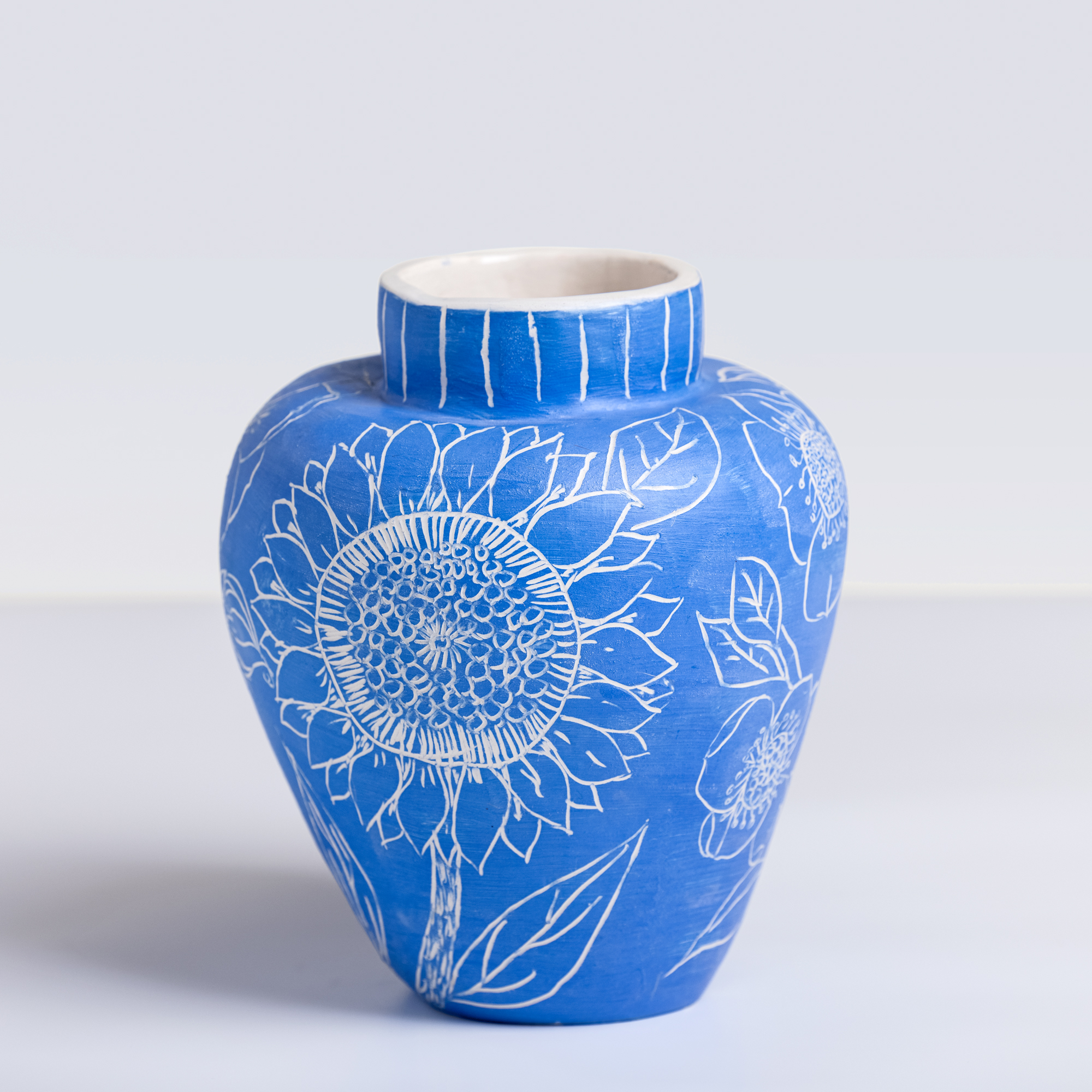 Low-temperature clay pieces are made with the ancient technique of rolling, which allows unique works to be built with free lines. Hand-painted with slip and “sgraffiato” technique. Finished with shiny glaze on the interior and bee’s wax on the exterior.
