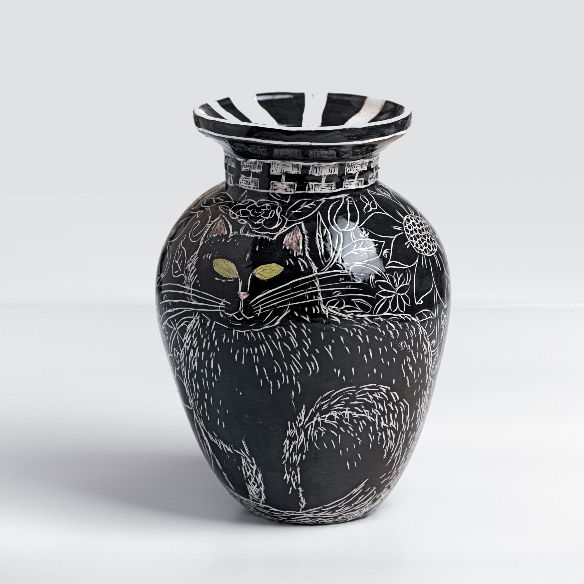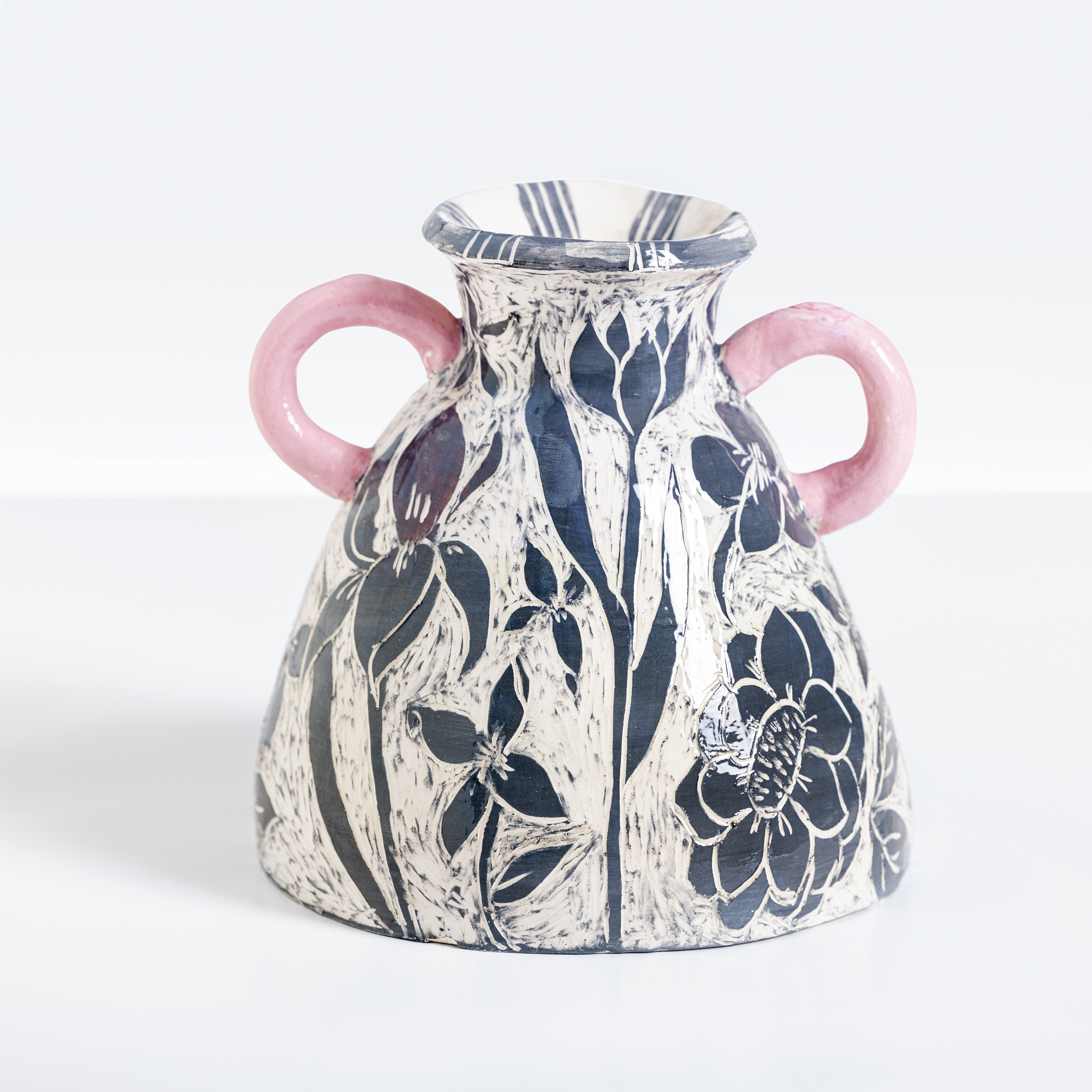 SOLD OUT / BLACK FLOWERS ON WHITE AND PINK BACKGROUND