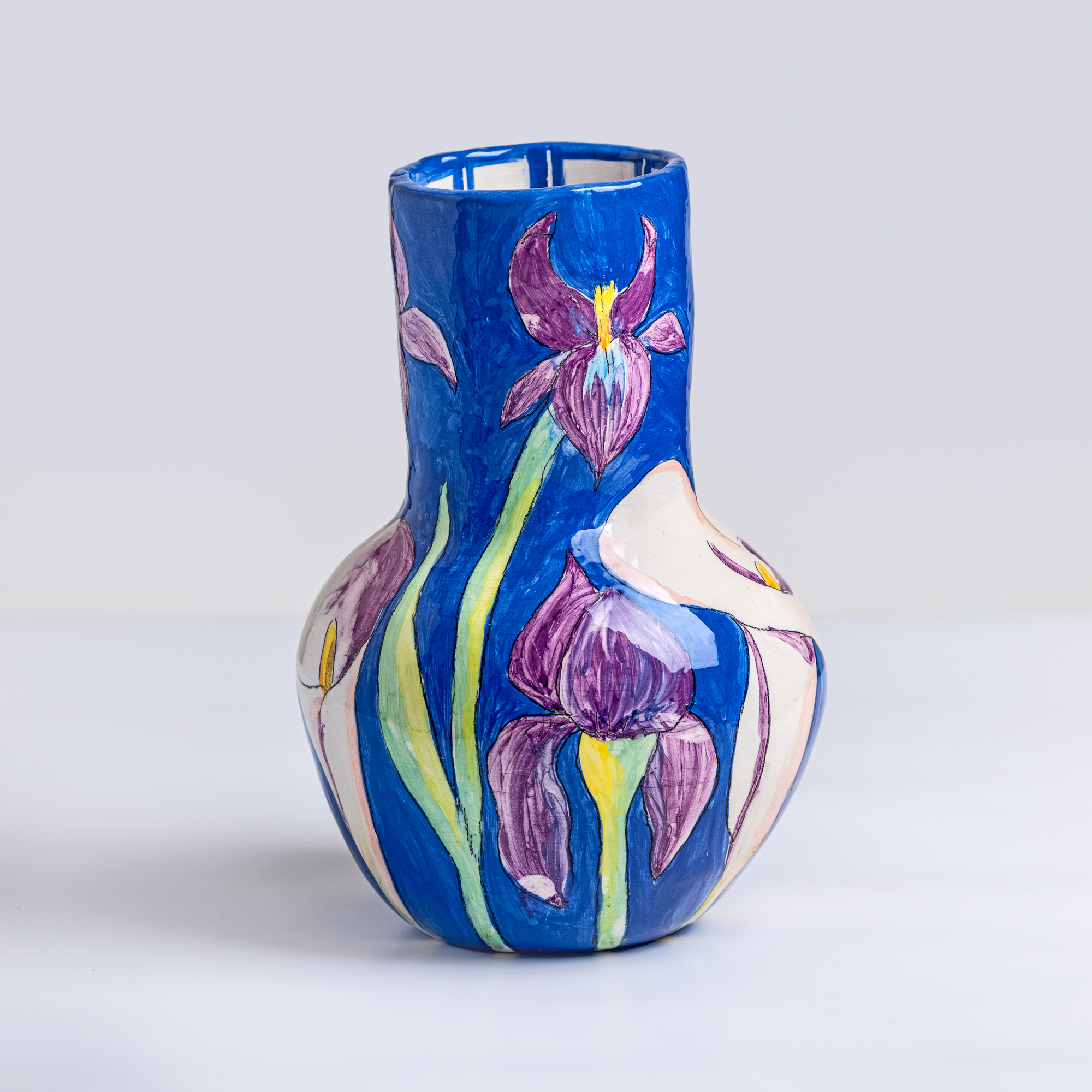 CALLAS AND LILIES ON COBALT BLUE BACKGROUND