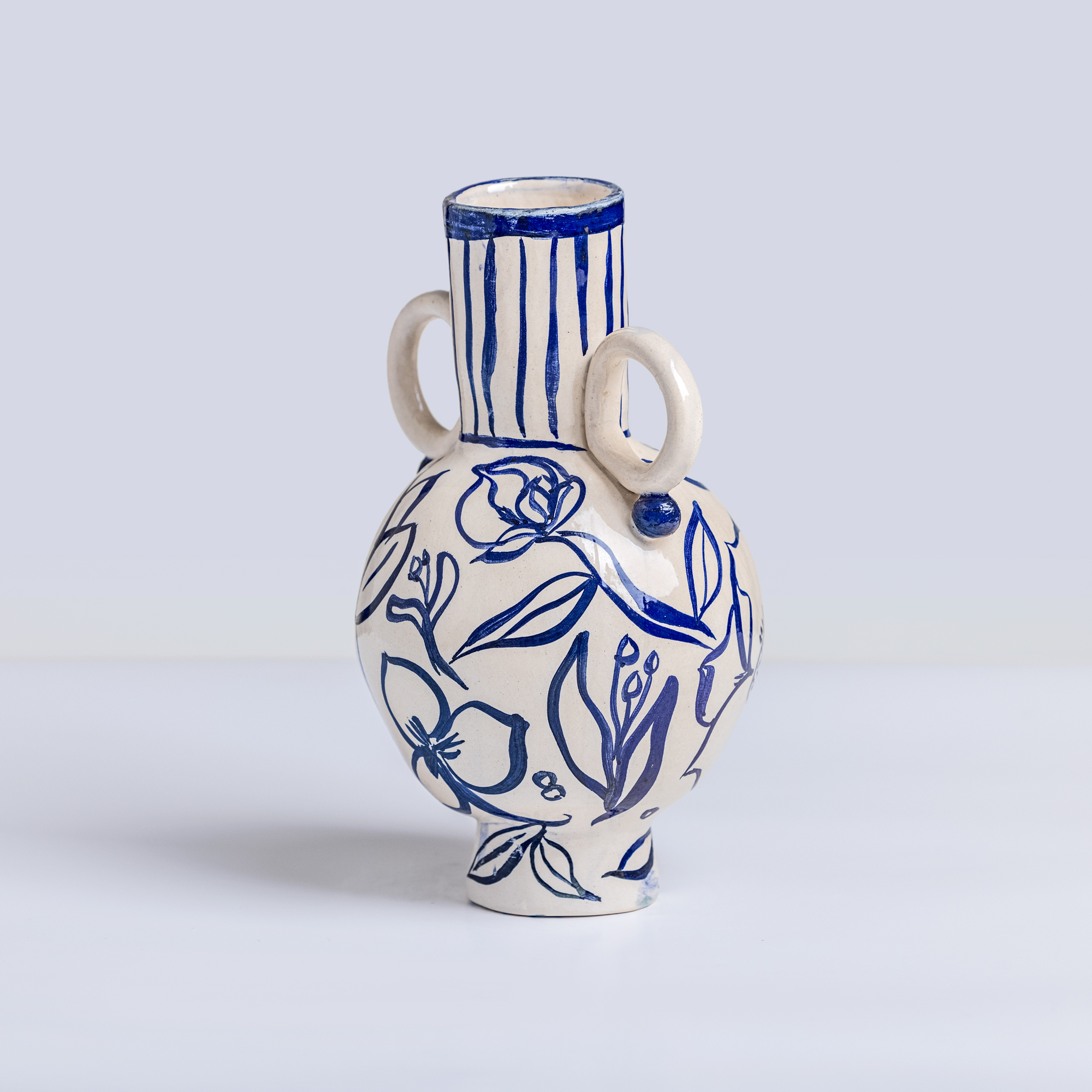 Low-temperature clay pieces are made with the ancient technique of rolling, which allows unique works to be built with free lines. Hand-painted with slip. Finished with shiny glaze on the interior and exterior.